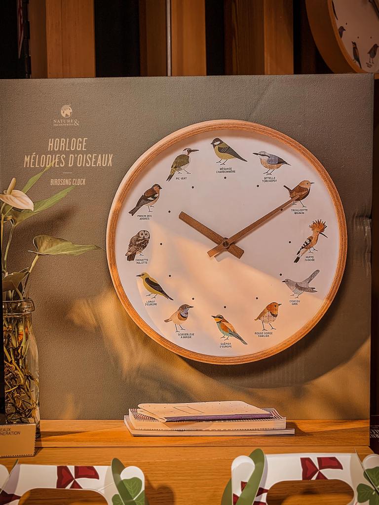 While we were in Geneva, I also spotted a few items that caught my eye as a want. I don’t often buy myself things, other than books, because I’m usually so deeply immersed in spending on R. It brings me joy to spend on R and I often tell Jordan, “Oh this is great!” Then I put it away after a few minutes of contemplation because I don’t need it. And, truthfully, these two items I spotted I don’t need either but they’re just fabulous. One is a clock that has a different birdsong at each hour which my husband immediately said, “Nope,” to (lol). And the other is a clock that has a giant moon which shifts and displays what moon phase we are in (!!!). Yeah, sure, you can look outside to figure that out, but, as I mentioned: this is a want and not a need because it’s so darn unique!